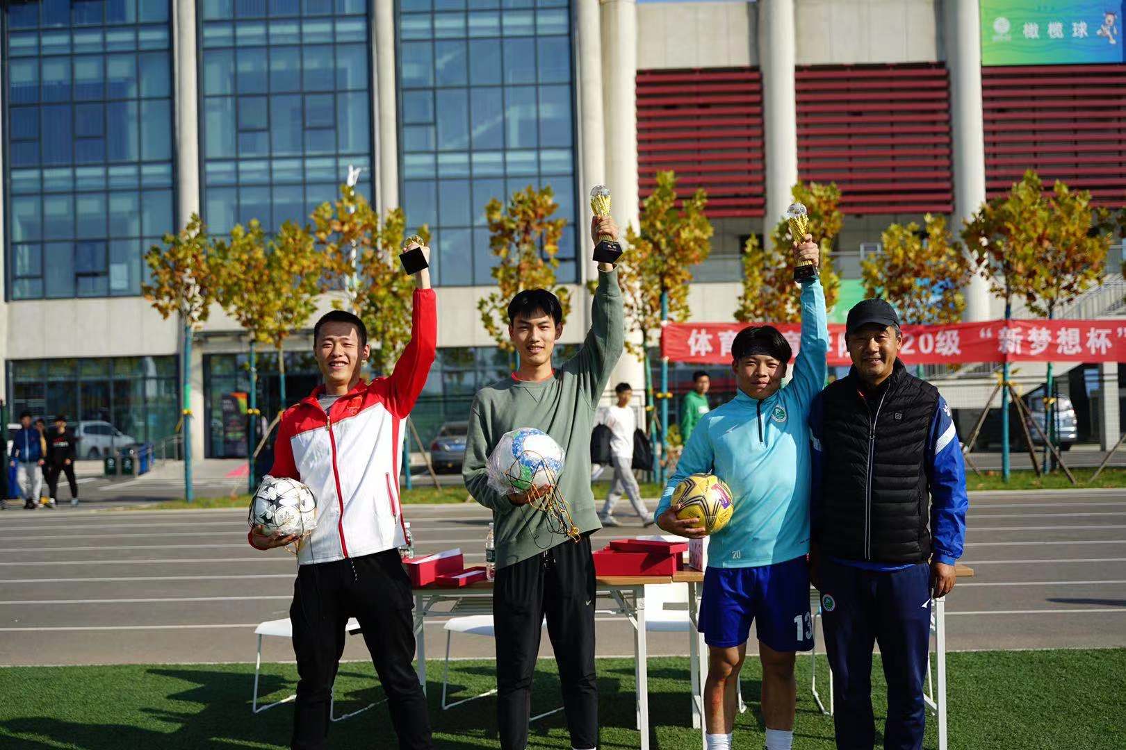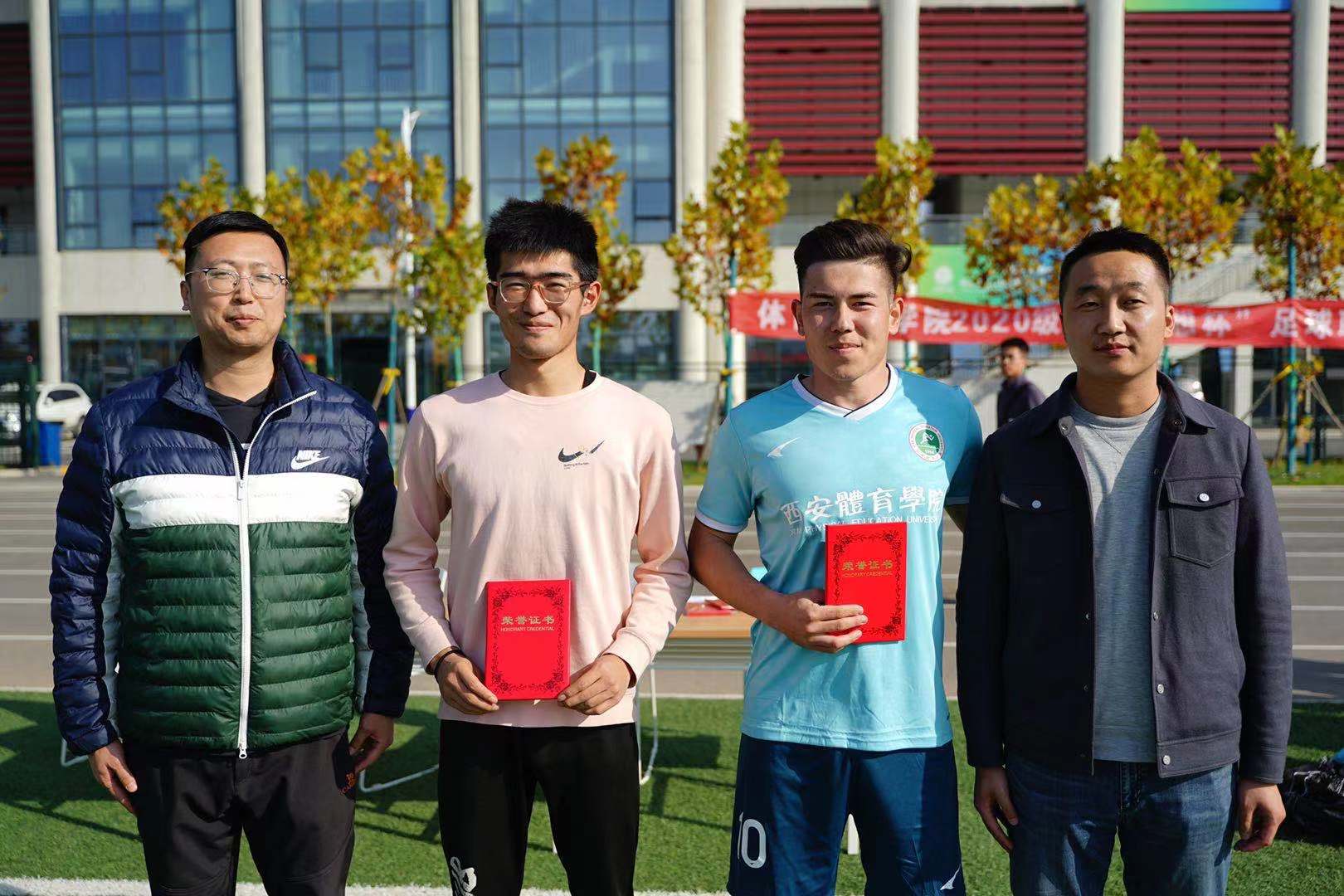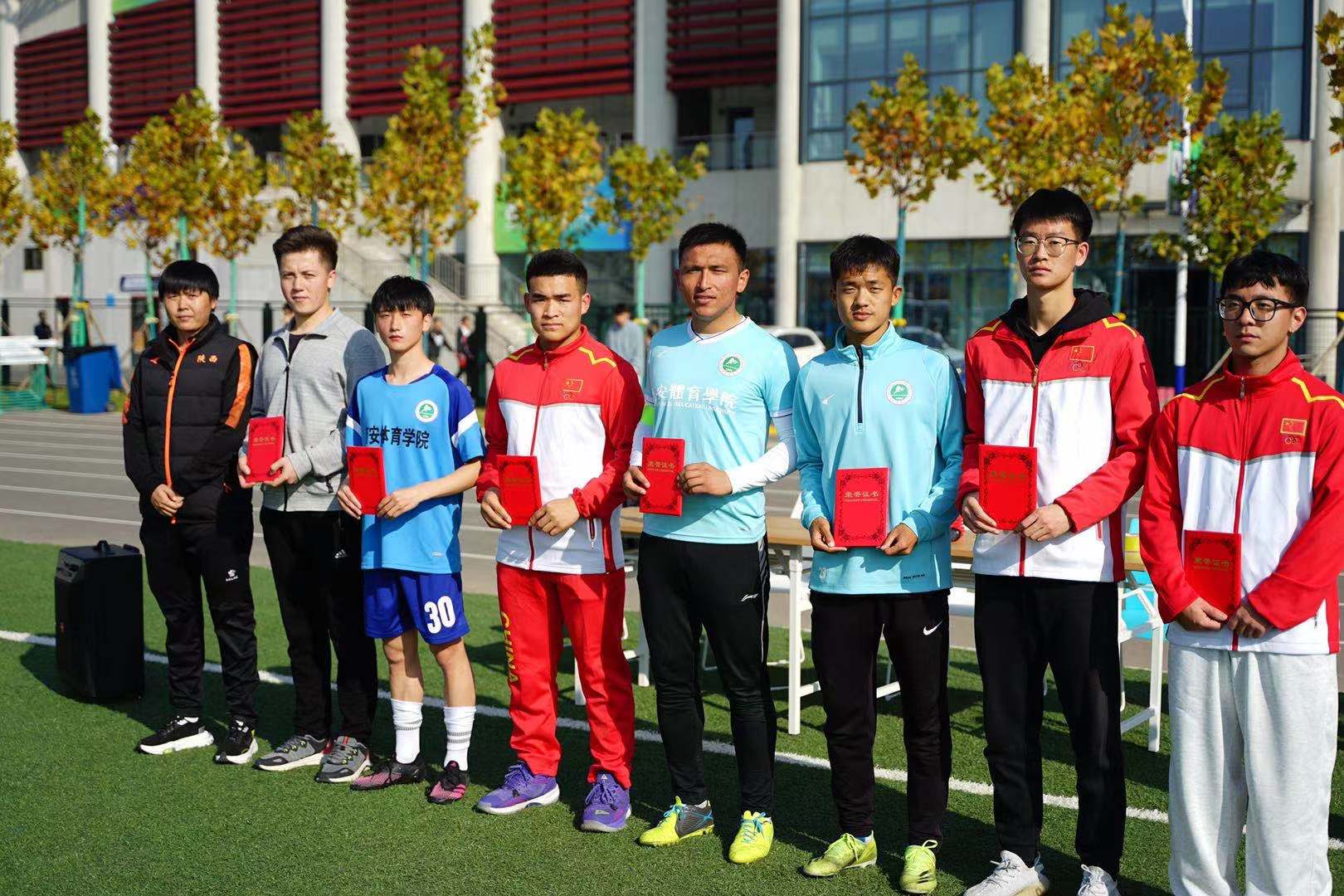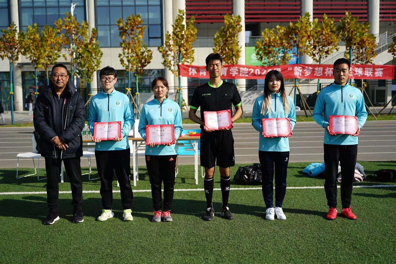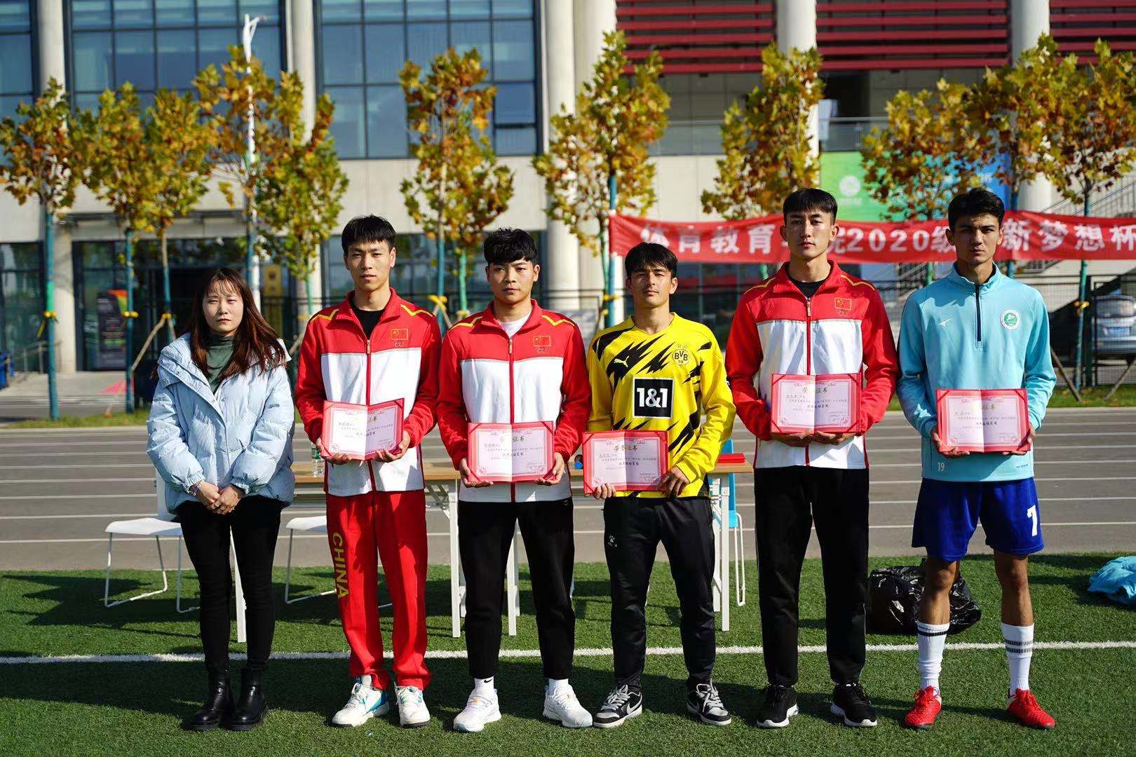 2021年11月17日中午13点50分,正午阳光明媚,体育教育学院2020级“新梦想”杯足球联赛历经15天比赛的精彩角逐,即将落下帷幕,决赛与闭幕式在鄠邑校区第一田径场举行。体育教育学院党委副书记李倩,足球学院教研室主任马俊,足球学院教研室教师刘锦瑜,足球学院教研室教师陈芳芳,体育教育学院2021级年级主任杨杰,体育教育学院2020级年级主任李西,体育教育学院2020级辅导员赵雅出席了赛后闭幕式。