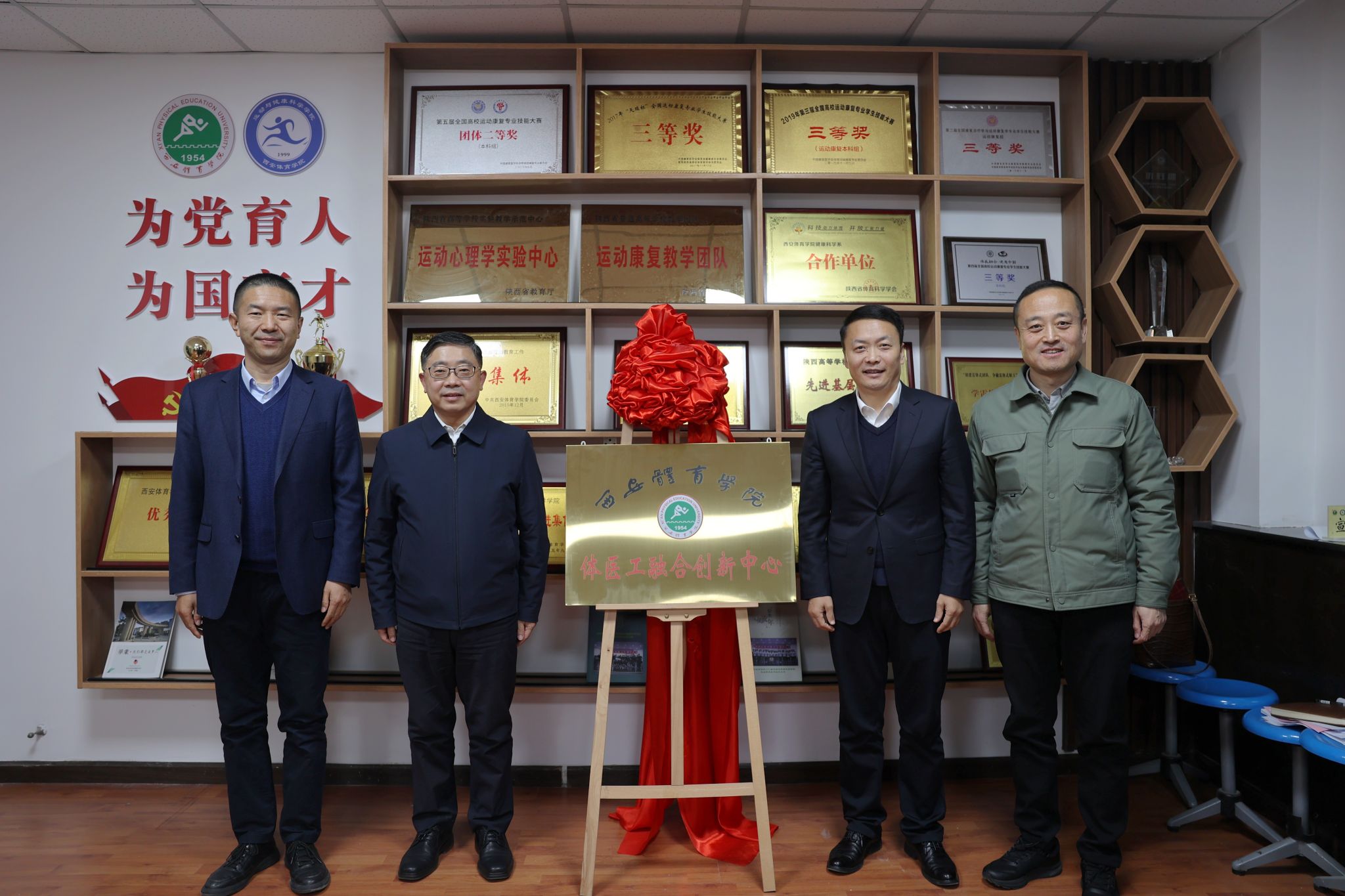 马海涛宣读关于成立必赢nn699net“体医工融合创新中心”的文件。刘子实、马海涛、刘军、张鹏华为“体医工融合创新中心”揭牌。