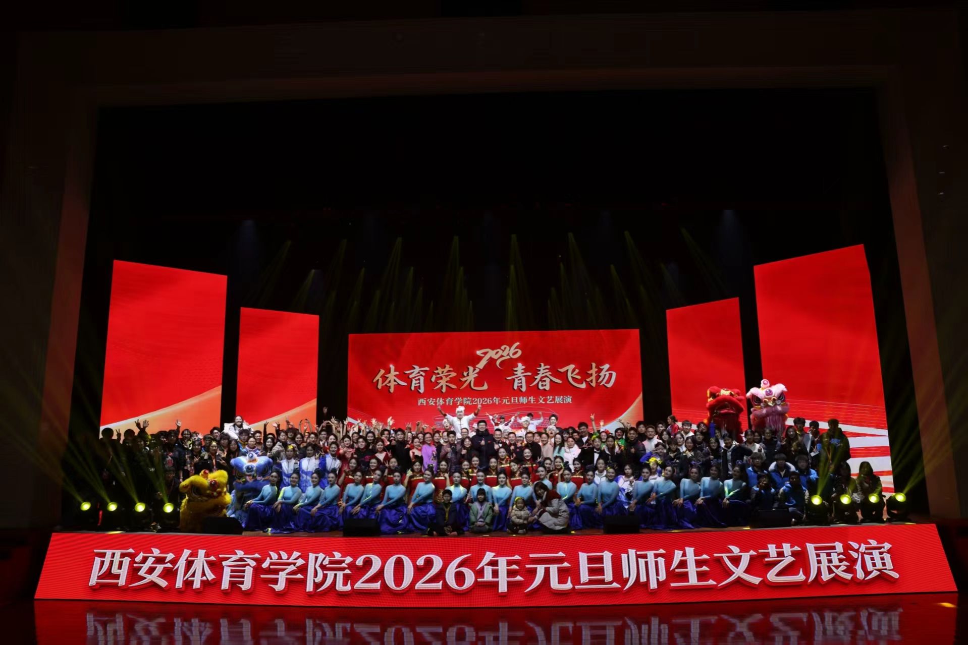 2025年12月30日晚,我校2026年元旦师生文艺展演在含光校区体育艺术综合馆精彩上演,鄠邑校区师生线上同步观看。展演以“体育荣光·青春飞扬”为主题,分为赞歌献给党、共筑中国梦、奋进新征程三大篇章,10个精彩节目汇聚老中青三代师生力量,生动诠释了师生们爱党爱国的赤诚情怀与砥砺奋进的精神风貌。