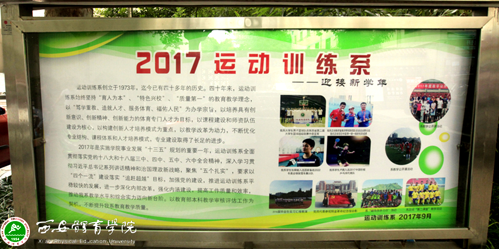 本网讯 新学期,新气象,新面貌。校园宣传栏是校园文化建设的重要载体,是展示学校品牌形象的重要窗口,亦是系部各处室相互交流学习展示的平台。为迎接新学期开始和新生入学,努力营造良好的校园文化氛围,由宣传部倡议,各系部、各部门将宣传栏更换一新,直观展现了近期在教学、科研、竞赛、训练及在特色亮点工作等方面取得的成绩,吸引着许多过往的师生、家长驻足观看,促使并引导新生朋友尽快了解西体、热爱西体、增强归属感,成为校园里的一道靓丽的风景线。9月3日,记者抓拍一组比较有特色的宣传栏,供大家欣赏。