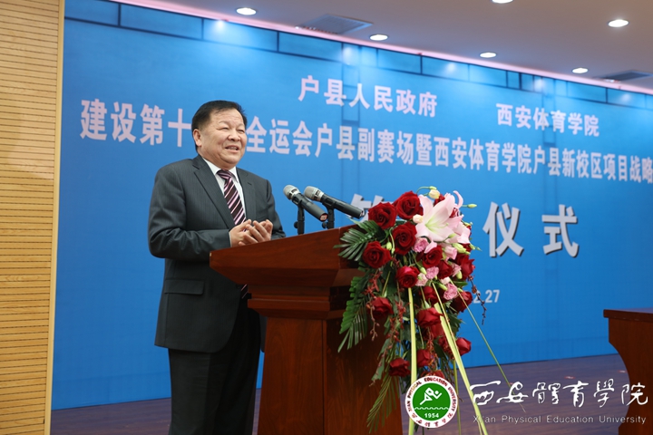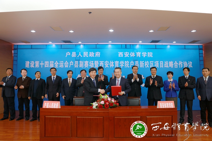 陕西省教育厅厅长王建利、省体育局局长姚金荣、省体育局副局长张继学、必赢nn699net党委书记吴长龄、院长周里、户县县委书记陆晓延等领导出席活动,双方党政干部、学生、群众代表约200人参加签约仪式。
