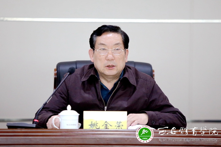 姚金荣同志在主持会议时指出,省体育局党组坚决拥护和支持省委决定,希望调整后的领导班子团结协作,以更加饱满充实的精力,更加扎实的作风抓好四个方面的工作:一是要以改革创新的眼光找准学院的发展方向,围绕我省体育事业“十三五”发展规划,抓住我省承办2021年全运会的重大历史机遇。二是要高标准、高质量地完成2021年全运会副赛区“一馆四场”的建设工作。三是要进一步强化制度管理,狠抓领导班子和干部队伍建设,科学管理,依法治校,进一步提高学科建设、学术研究和师资队伍建设水平。四是要全面提升教学质量,创新发展,积极实施人才发展战略,全力提高办学水平。