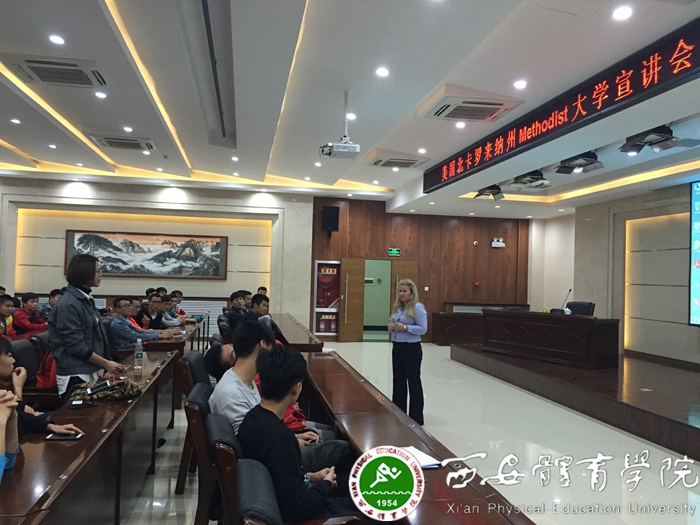 Olga女士表示非常期待我院能派代表团前往美国卫理公会大学进行交流访问,她向学院运动系和体育系学生介绍了卫理公会大学近年来的发展状况,并就学科设置、优势项目、学生就业等方面学生感兴趣的问题进行解答。