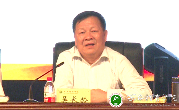 讲到学院的发展,吴长龄指出:“2021年第十四届全运会将在陕西举办,这是我院千载难逢的发展机遇。省政府已经批准我院建设户县新校区,新校区还将承担十四运会手球、曲棍球、垒球、棒球、橄榄球的场馆建设和赛事组织任务,这些场馆在十四运会后用于我院教学训练。我们相信,筹办十四运会、全民健身和健康中国战略的落实将需要大量的体育专业人才,希望大家学好体育理论,练好足、篮、排、羽、网、乒、游泳等技能,好好感悟体育、苦学体育、争当行家里手,到时候能够为十四运会以及体育强国建设贡献出自己的一份力量!”