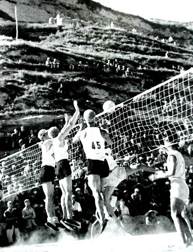 1942年9月,延安国际青年节大会“九一”扩大运动会,图为排球比赛。