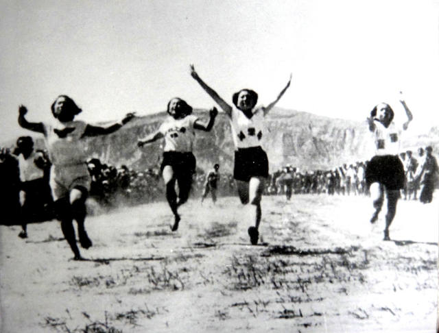 1942年9月,延安“九一”扩大运动会女子赛跑。