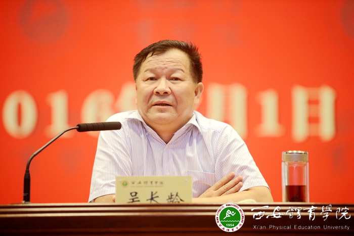 最后,吴长龄同志深情地讲道:“年轻就是梦想,年轻就是奋斗,年轻就是定力,年轻就是潜学。同学们,希望你们能够在未来能够继续为了你们热爱的体育而奋斗,而努力。我想借用陈忠实先生的一句话“一群幼苗生长在同一片林地地互相竞长,互相拥挤,志在天空。”来作为结语——中国体育事业的天空、西北体育事业的天空、陕西体育事业的天空多大呀,能容得下所有有才华、有志向的青年人去开拓、去创业、去实现自己的人生价值和理想!”