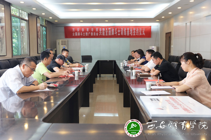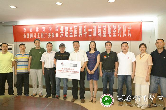 本网讯 6月17日,以推广民族体育项目脚斗士运动、培养优秀运动员为目标的“全国脚斗士俱乐部训练基地”在我院正式签约,我院与脚斗士项目联合创始人、全国脚斗士大赛推广委员会赛事总监吴林滨先生签订了战略合作协议,全国脚斗士大赛推广委员会授牌我院为全国训练基地。未来,基地不仅承担着为脚斗士培养优秀运动员的重任,更“以点带面”,以基地为原点,通过在全省范围内的大中小学校的普及,使原创民族体育运动脚斗士在陕西花繁叶茂,生根结果。签约仪式上,双方就脚斗士项目深层合作展开了探讨,在建立高校人才培养与俱乐部建设的良好机制,高校科研力量与脚斗士事业发展的途径等问题上达成了一致。