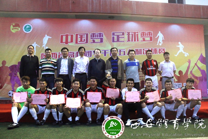 本网讯5月31日下午, 2016年“中国梦足球梦”陕西省高校团学干部五人制足球赛决赛暨闭幕式在我院足球场举行。共青团陕西省委员会学校部部长潘磊、院党委副书记朱元利、党委副书记王跃生、副院长白跃世及学院相关部门的负责同志、部分高校团委书记到场观看出席了本次闭幕式。