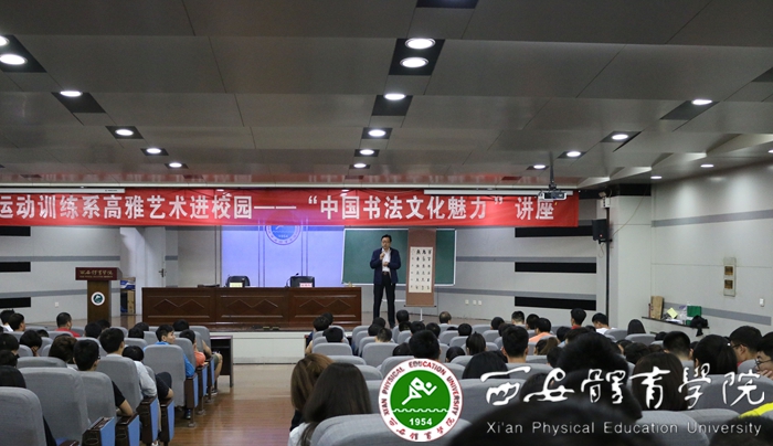 本网讯为了营造良好的文化艺术氛围,大力弘扬优秀传统文化,提高学生的书法艺术水平,陶冶学生情操。6月2日中午,由运动训练系举办的高雅艺术进校园--“中国书法文化的魅力”讲座在教学楼一楼报告厅举行,著名书法家陈云龙教授(现任陕西省教育书法研究会会长;长安大学教授)受邀做了专题讲座。