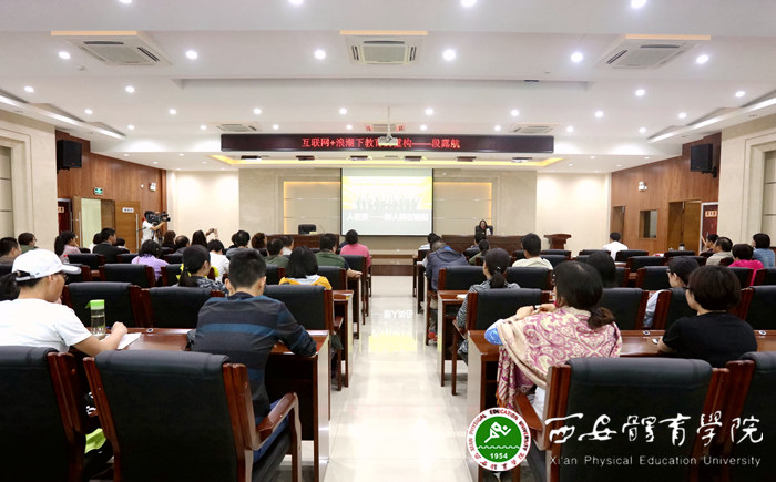 本网讯5月25日下午,应我院网络管理中心和教务处的联合邀请,教育部全国高校教师网络培训中心首席策划、全国微课比赛总策划段露航博士在新网球馆六楼大会议室作了题为《互联网+浪潮下教育的重构》的学术讲座。各系(部、中心)主任、负责教学的副主任、教学秘书、教师、学生等共100多人参加。本次讲座由学院副书记王跃生主持。