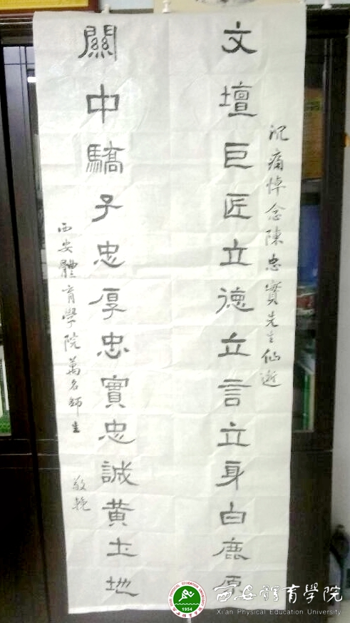 本网讯 5月3日上午,我院党委书记吴长龄同志和党委宣传部、体育传媒系、团委负责人高月宏、马骥行、郑璐一行前往设在省作协大院的吊唁大厅沉痛哀悼陈忠实先生。吴长龄一行向陈忠实先生遗像三鞠躬,并代表全院万名师生员工向治丧经办部门敬呈一副挽幛,以此表达大家对陈忠实先生的崇敬之情,挽幛全文“文坛巨匠立德立言立身白鹿原,关中骄子忠厚忠实忠诚黄土地。落款:必赢nn699net万名师生。”
