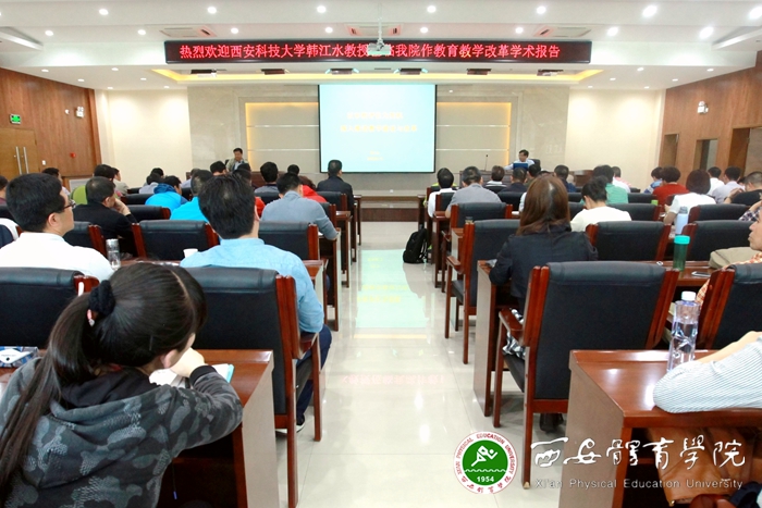 本网讯 4月27日下午,西安科技大学副校长韩江水教授应我院邀请,在新网球馆六楼大会议室作了题为《以审核评估为契机深入推进教学建设与改革》的学术报告。院领导、各职能部门负责人、各系(部、中心)科级以上干部、教研室主任、督导组专家以及参与我院人才培养方案修订工作的相关人员100多人聆听了报告,报告会由副院长陈彦主持。