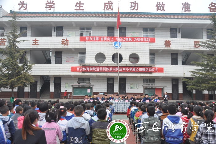 张卫国同志一行受到了铜川市印台区政府副区长杨梅等有关部门领导的热烈欢迎。在实地考察了阿庄小学的办学条件及体育器材配置情况后,领导们与阿庄小学全体师生共同参与了隆重而简短的爱心捐赠会。运动训练系共捐赠篮球、足球、跳绳等体育用品和器材共计107件,所有物品均由学生自愿捐资购买。会后,我院男子篮球队进行了专业技能展示,并与阿庄小学篮球队进行了精彩的互动表演。
