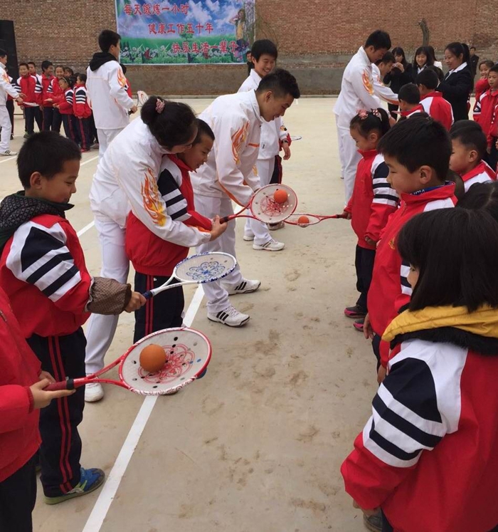 社会体育与休闲体育系学生和南孟小学的孩子们进行柔力球游戏互动