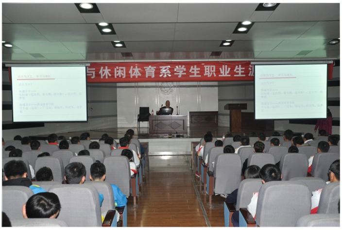 本网讯为进一步提高大学生对职业规划的认识,更好地推动学生的健康发展、个性发展和全面发展,社会体育与休闲体育系举办的主题为“活在当下、拥有未来”的学生职业生涯规划讲座于11月4日下午14:30分在教学楼一楼报告厅举行。讲座由社体系2000级自主创业的优秀毕业生方向东担任主讲。系领导、全体辅导员及全系学生参加了讲座。
