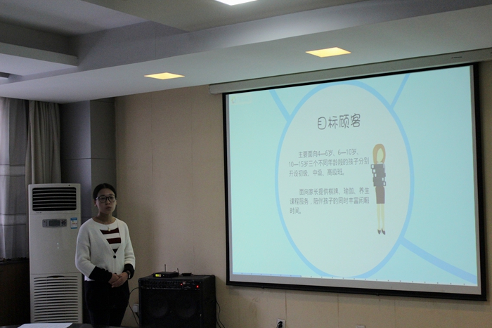 第一组参赛选手详细介绍了参赛项目《西安益家乐健身有限公司》,展示完毕后朱元利同志以及各评委老师对该项目进行了点评,并对展示内容中出现的不足给出了修改意见。紧接着第二组项目《青锋体育经纪有限公司》和第三组《动悦适亲子俱乐部》的选手分别对各自参赛内容进行了展示,参会老师对两组作品进行了专业的点评。