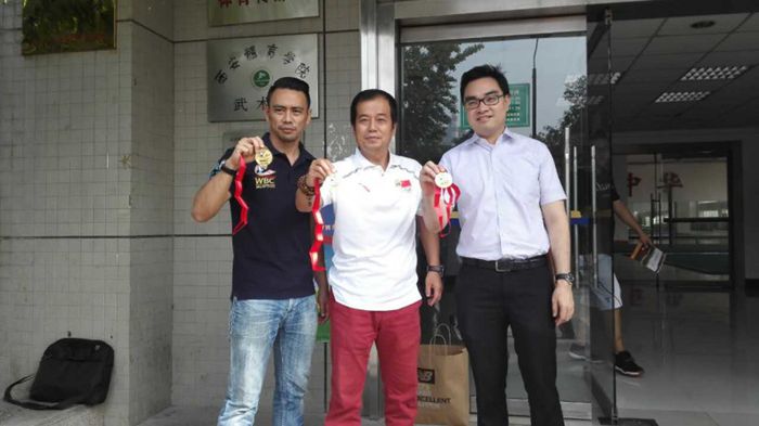 泰拳教练WITTAWAT KASOM先生(左)与武术系主任马文国(中)和泰王国驻西安领事馆工作人员(右)