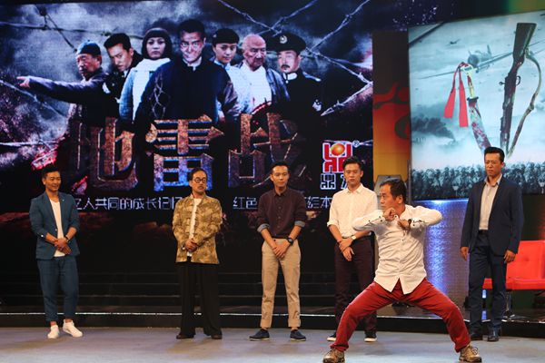 本网讯在纪念抗战胜利70周年之际,应山东卫视邀请,我院武术系主任马文国作为抗战大戏《地雷战》的主要演员赴济南参加规模宏大的《地雷战》首播典礼录制。