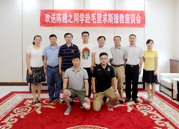 本网讯7月15号上午,我院在新网球馆六楼召开欢送陈巍之同学赴毛里求斯援教座谈会。党委书记吴长龄、党委副书记朱元利、研究生部总支书记熊蜀蓉、学工部部长王志刚、思政部主任秋实、研究生部副主任姜涛、团委副书记王红霞以及两名研究生代表参加了座谈会。