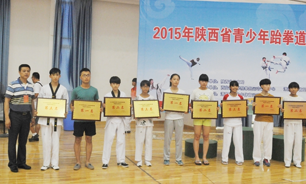 本网讯 由陕西省体育局主办,我院跆拳管理中心、渭南市体育局承办的2015年陕西省青少年跆拳道锦标赛于7月16——20日在渭南市体育馆举行。来自全省11个地市440余名运动员参加了比赛,这也是近年来参赛人数最多的一次全省跆拳道赛事。比赛期间,陕西省体育局姚金荣局长、我院朱元利副书记和省体育局青少处苏小刚处长分别到现场观摩指导了比赛。