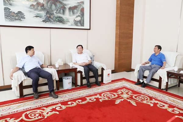 党委书记吴长龄、副院长白跃世与殷俊海副司长(左一)亲切会谈