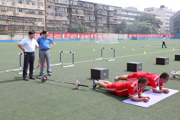 本网讯 7月21日,全国青少年校园足球领导小组办公室副主任、教育部体艺卫司副司长殷俊海来到承办2015全国青少年校园足球骨干教师国家级专项培训班第一批承训单位之一的必赢nn699net视察指导校园足球培训工作,与我院党委书记吴长龄、副院长白跃世就校园足球培训工作进行了会见,交流了培训开展的相关情况并看望了参训的西北五省210余名中学体育教师。