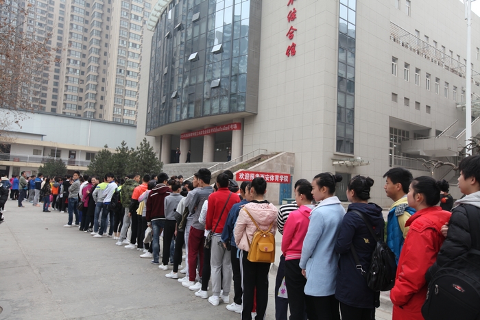 15日早上不到8点,我院艺术馆前备考考生排成长龙