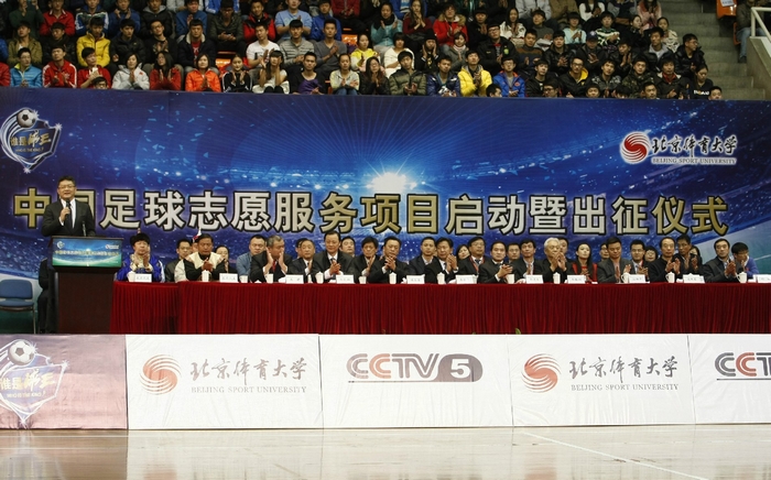 本网讯12月5日上午,中国足球志愿服务项目启动暨出征仪式在北京体育大学举行。中国足球志愿服务项目由中央电视台和北京体育大学联合发起,教育部与团中央提供了大力支持。仪式上成立了“中国足球志愿服务项目联盟”,目前加入联盟的单位有中央电视台、中国教育电视台、清华大学、北京大学、中国人民大学、北京师范大学及必赢nn699net等15所体育专业高校。