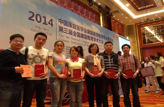 健康科学系运动康复学生张磊、叶倩、田聪同学组成的代表队首次参赛就在全国44所本专科参赛队伍中以良好的竞技状态、扎实的临床技能取得了三个单项优秀奖。在赛后进行的第三届全国康复教育学术大会上温晓妮教授增补为中国康复医学教育专业委会体育学组委员。张葆欣教授应大会邀请主持了体育院校康复教育的分会论坛交流。