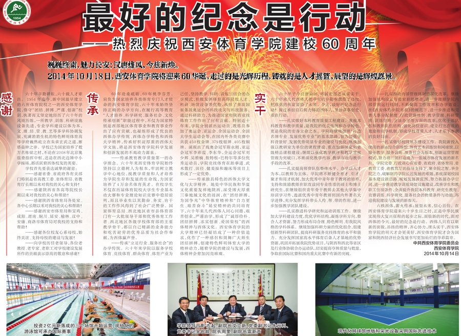 本网讯 2014年10月15日,中国体育报4版刊发我院校庆公告:《最好的纪念是行动》。链接为:
