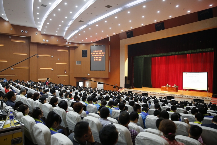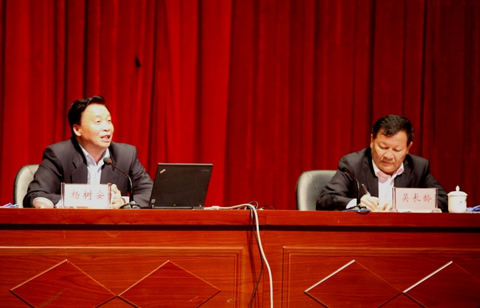 杨树安校友(左)作专题讲座 吴长龄同志主持