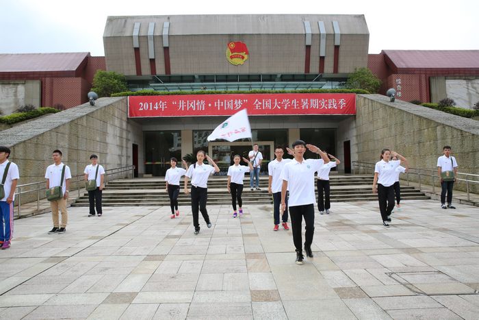 本网讯 8月11日,由团委副书记王鹏、大学生艺术团教师黄宏叶带队,17名学生骨干来到江西全国青少年井冈山革命传统教育基地参加第五期“井冈情·中国梦”全国大学生暑期实践季活动。