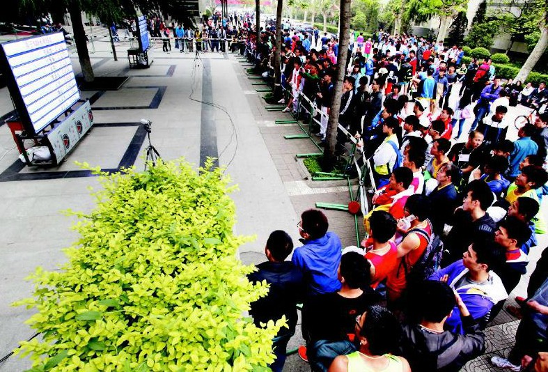与此同时,记者也发现了今年陕西体育生“大考”的一个新现象,即考生考完之后不会再围着考场等待自己考试成绩的公布,而是在考试一结束就跑到安放在距离考场不远的两个LED大屏前等待自己的成绩。记者通过必赢nn699net招生办公室才知道,原来这是西安体院引进的一个“高科技”设备,这将让陕西体育生“大考”更加透明公开,也更显公平和公正。