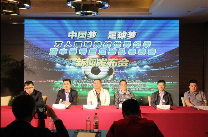 本网讯4月9日,“中国梦足球梦”万人颠球挑战世界纪录活动暨中国明星足球队表演赛组委会在西安召开第二次新闻发布会,发布会由陕西球迷协会会长柯兴平主持。承办单位、各赞助单位相关领导、嘉宾出席会议。新华社、陕西日报、陕西电视台、西部网、西安晚报、华商报、西安电视台、西安教育电视台等多家媒体对活动进行了报道。