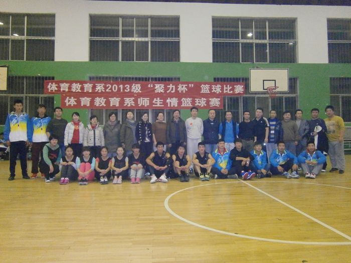 本网讯11月22日晚,体育教育系“师生情”篮球赛在沣峪校区篮球馆举行,体育教育系、沣峪校区负责人及体育教育系全体干部、辅导员、2013级师生共同参加了活动。