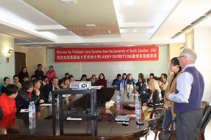 Larry Durstine教授认为,患慢性疾病(糖尿病、高血压、高脂血症、肥胖等)的人越来越多,要缓解或改善这一局面,运动是一剂简单却有效的良药。今后,在社区推广运动生活将成为各国政府的重要任务之一。讲座结束后,Larry Durstine教授还与到场师生进行了交流互动。