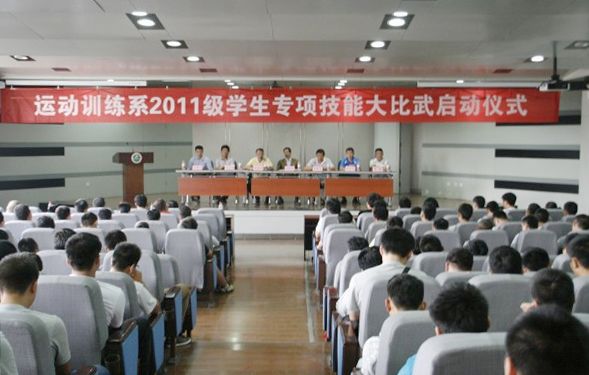 本网讯为进一步培养和提高学生的实践能力,探索新形势下培养学生实践能力的新途径和新方法,运动训练系2011级于10月9日中午在教学楼一楼报告厅举行学生专项技能大比武活动开幕式。教务处处长刘新民、学工部部长张朝阳、运动训练系负责人以及各教研室主任出席了会议。
