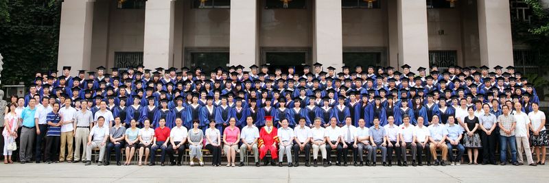 毕业研究生与院系领导合影