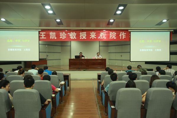 本网讯 应学院邀请,首都体育学院博士生导师、副院长王凯珍教授为我院师生作了题为《哲学社会科学课题选题、申报与评审》的学术报告。报告由党委书记吴长龄同志主持。