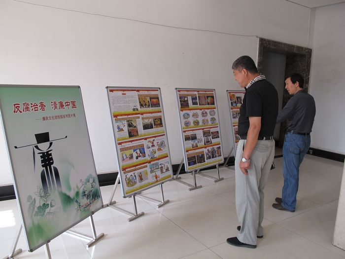 本网讯为进一步推动廉政文化进校园工作,充分发挥廉洁文化的教育、示范、熏陶和导向作用,近日,院纪委举办了以“反腐治奢 清廉中国”为主题的党风廉政系列宣传图片展。图片紧紧围绕党的十八大关于反腐倡廉建设工作的新任务、新要求,围绕贯彻落实“中央八项规定”,生动而富有感染力地敲响了“反腐治奢”的警钟,展示了我们党反腐败的决心和信心。