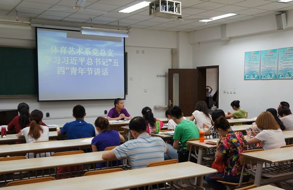 本网讯5月15日,体育艺术系党总支在教学楼104教室召开了学习习近平总书记五四青年节重要讲话的学习会,该系总支书记、总支委员、支部书记、教研室主任、工作人员等参加了学习。学习会由系总支书记许伟主持。