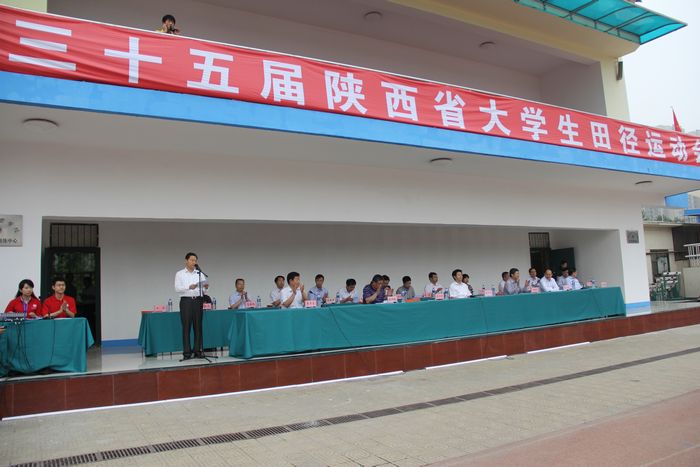 本网讯5月23日,第35届陕西省大学生田径运动会在我院田径场隆重举行。这是陕西省大学生一年一度的体育盛会,来自全省48所高校的57支代表队1100余名运动健儿参加男女各22个大项的比赛,比赛从23日开始到24日结束为期两天。陕西省副省长庄长兴宣布运动会开幕。