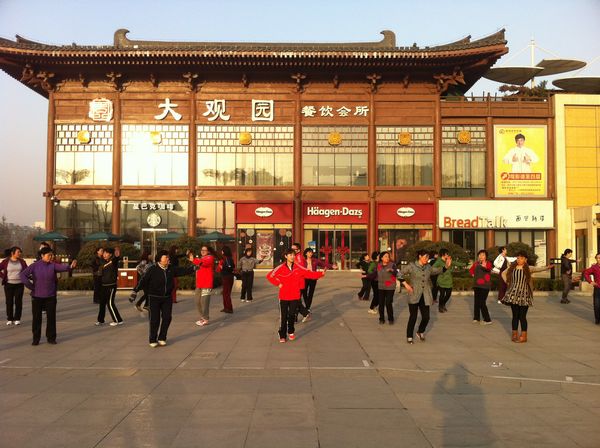 3月5日清晨,运动训练系2010级健美操专业师生一行作为体育运动的传播者在曲江银泰广场引导群众健身。同学们用专业的技术、饱满的热情带动晨练的群众翩翩起舞,将体育精神和运动乐趣传播到大家的心里,晨练群众对同学们的专业指导纷纷表示感谢。