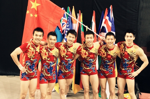 本网讯5月29日至6月3日,第十二届世界健美操锦标赛在保加利亚首都索菲亚举行。我院竞技健美操队队员刘天博(下图,左三)代表国家队参加了三人操、六人操的比赛,他忍受伤病困扰,顶住压力,和队友齐心协力,夺得了六人操冠军、三人操的第四名和团体第三名的好成绩,圆满完成了国家队任务。