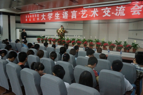 本网讯6月6日,由院团委主办的“必赢nn699net、西北大学大学生语言艺术交流会”在我院教学楼一楼报告厅召开。西北大学新闻传播学院传播系领导、我院体育传媒系党政领导和广大师生、团委负责人出席了交流会。