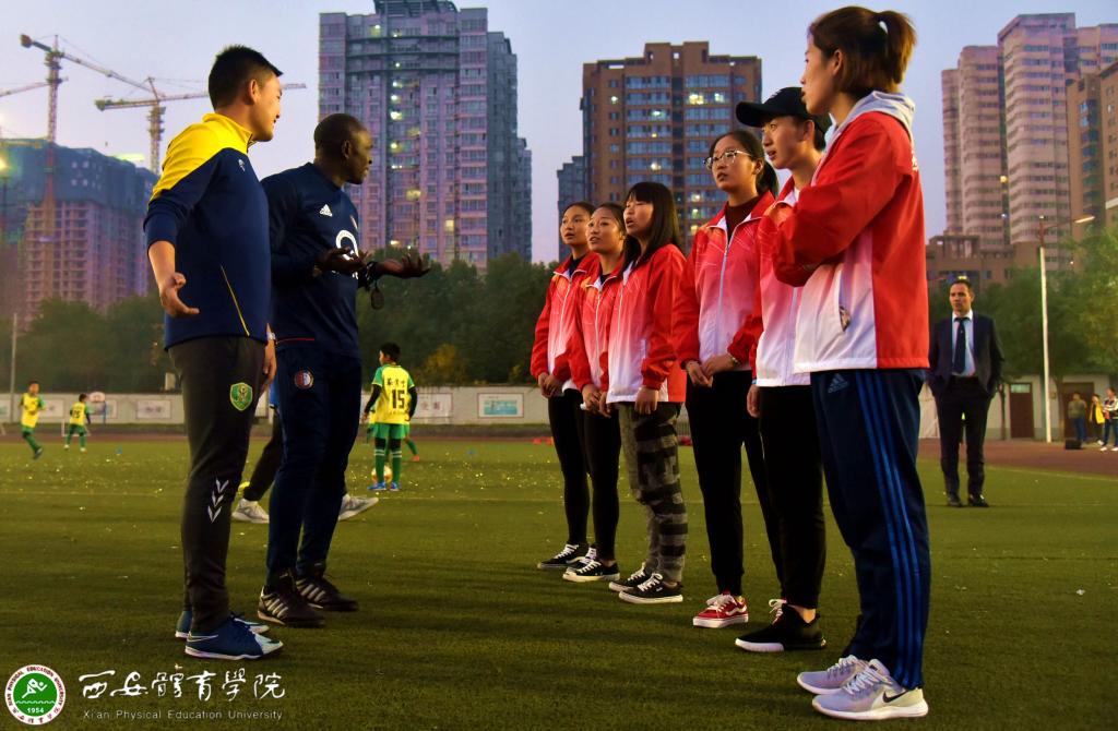 荷兰鹿特丹费耶诺德足球俱乐部青训教练迈克·奥比库从青少年足球训练准备、训练框架、训练方法等方面介绍了费耶诺德青训体系。他说,费耶诺德青训体系之所以远近闻名,注重的是“Geenwor-denmaardaden(少说多做)”,我们会注重学生的个人成长,不过多约束学生,并积极鼓励他们参加足球比赛,总结经验,这样才能更快进步。为了更加直观感受费耶诺德青训模式,迈克·奥比库与同学们进行了教案互动训练,训练同学们的短时教案撰写能力并进行了精心的点评指导。交流会后,足球学院学生在小雁塔小学与陕西浪潮足球俱乐部精英队学员共同接受了费耶诺德足球教练的足球训练指导。
