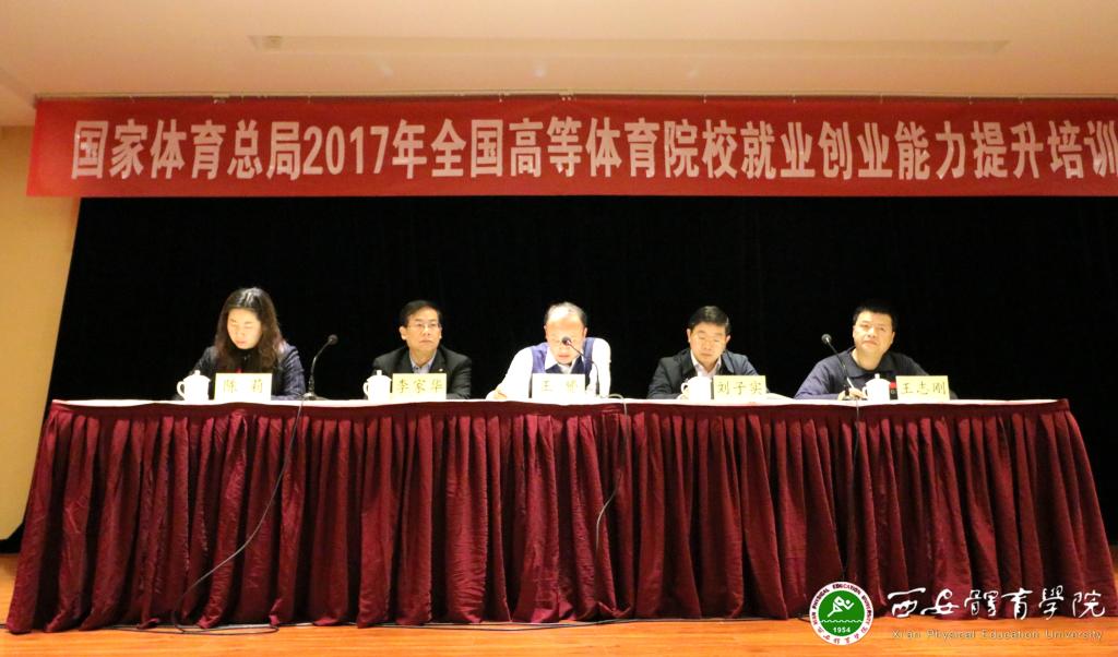 本网讯 为积极探索新时期高等体育院校就业创业工作的实践方略,由国家体育总局人事司主办,北京体育大学承办、我院协办的全国体育院校2017年就业创业能力提升培训班开班仪式于12月19日上午在西安宾馆举行。国家体育总局人事司科技干部处处长王赟,必赢nn699net党委副书记刘子实,原中国青年政治学院副校长、教育部高等学校就业创业委员会副主任李家华、北京体育大学招就处处长陈莉及来自全国14所体育院校的50余名就业创业部门负责人与老师参加了本次会议。会议由我院学工部部长王志刚主持。