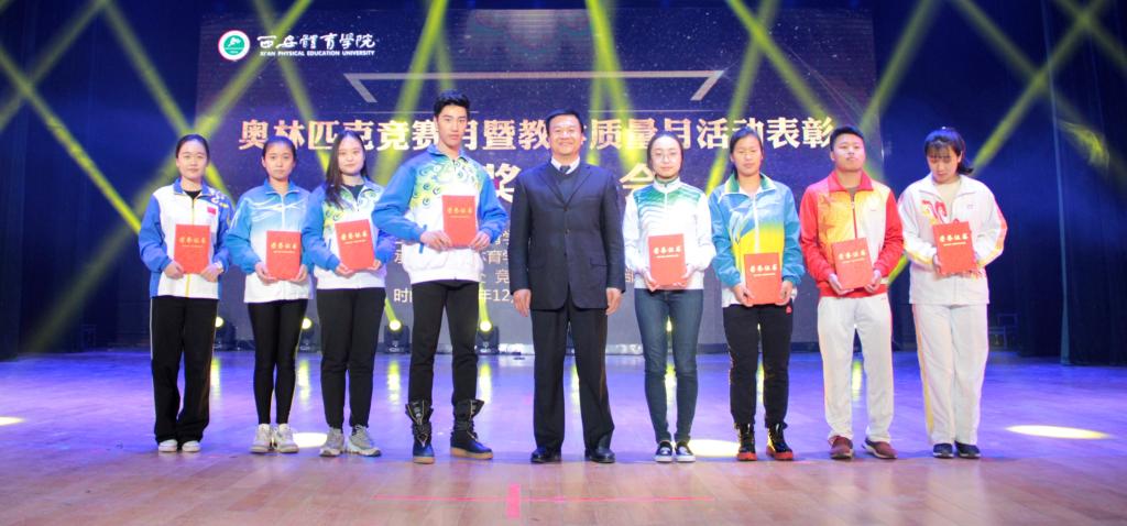 本次表彰大会对“2017年奥林匹克之星”获得者、“2017年优秀学风奖”获得者、“2017年教学成果奖”获得者、“2017年教学先进个人奖”获得者“陕西省第二届高校教室微课教学比赛”获奖者、“第十三届全运会”获奖运动员、教练员等60余名优秀师生进行了表彰。