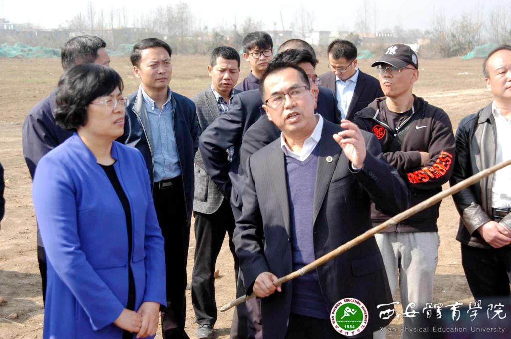 冯力军(左三)对我院鄠邑新校区“一馆四场”建设情况提出意见及要求